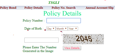 - Go to website of TSG Life Insurance site URL: http://tsgli.telangana.gov.in/PolicyDetails.aspx