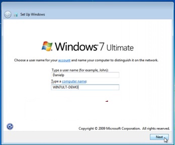 - After this the computer will reboot then set the user’s and PC name. Select the next button.